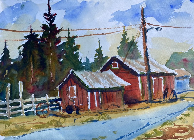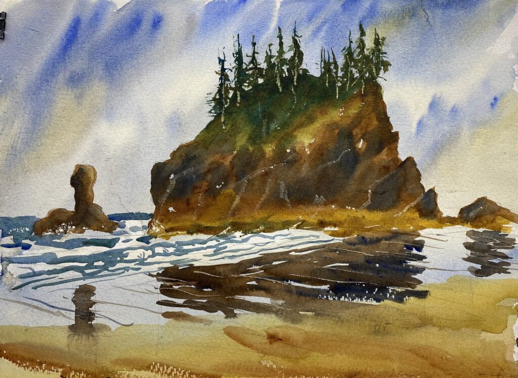 I painted ten paintings over the course of the four days, which is a lot for me. Since this is my third summer at this event, I had a better idea of where to look for subjects, so I didn’t have to drive around as much. It was fun seeing other artists as they painted with me and at two dinners hosted by the organizer, Pacific Northwest Art School. I camped out at Fort Ebey State Park, and enjoyed good weather until Friday, when it rained. Here are some of the paintings I made in addition to the one above.